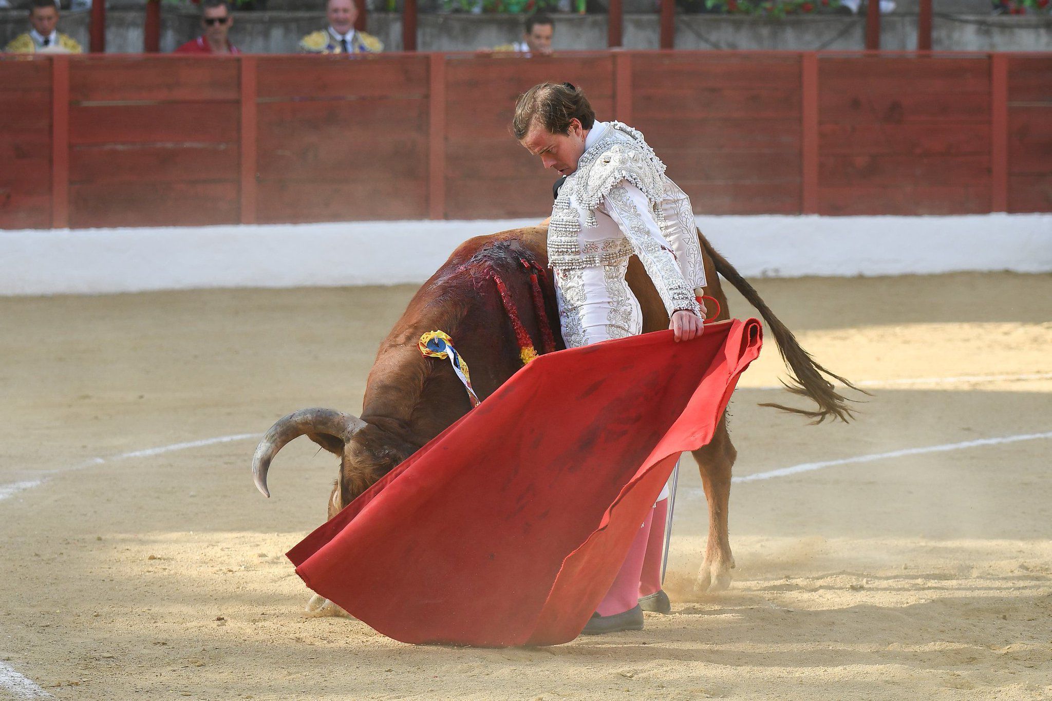 Ya desde el recibo de capa empezó a tomar cuerpo la cosa. Se fue a los medios a torear a la verónica con el capote recogido de las puntas, echando los vuelos con temple y rematando con una media de mucho empaque, abelmontada. El toro, colorado, hondo, con plaza, corto de manos y de cuello largo, tenía hechuras de embestir. Y embistió. Después de emplearse en el caballo, Cortés quitó por delantales con la gracia y el aire de un capotero grande. El toro, “Mentirita”, número 110 con el hierro portugués de Condessa de Sobral, fue a más. En banderillas ya dejó entrever su calidad, mientras Pablo Gallego en la lidia y Daniel Duarte con los palos firmaban un tercio de gran altura.